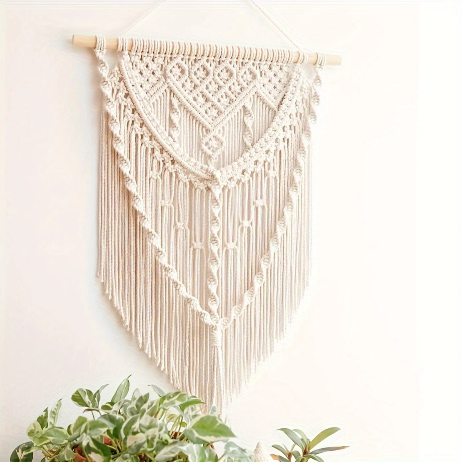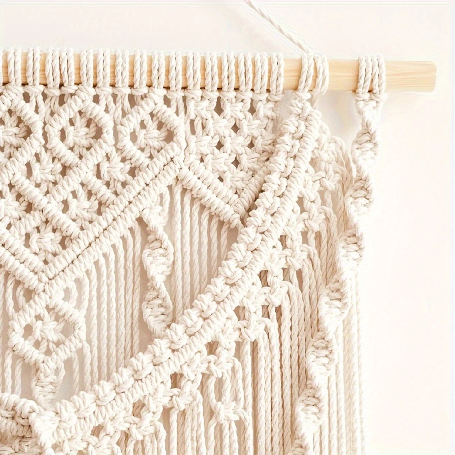 3. Bring a sense of cultural vibrancy to your home with this artisanal wall decoration. This macrame tapestry exudes boho chic charm and adds a touch of natural fibers to your space, making it a truly unique and eco-friendly addition to your decor.
