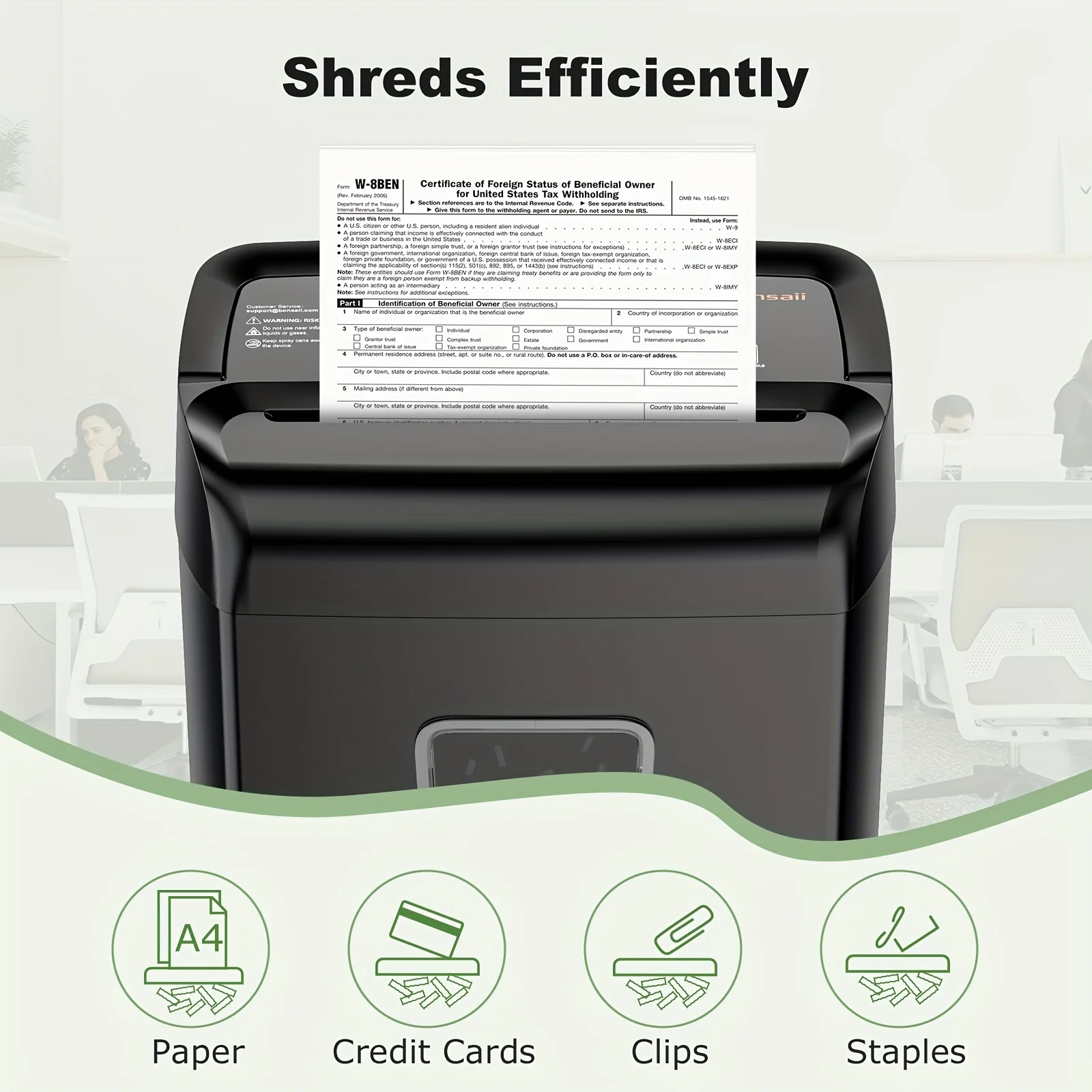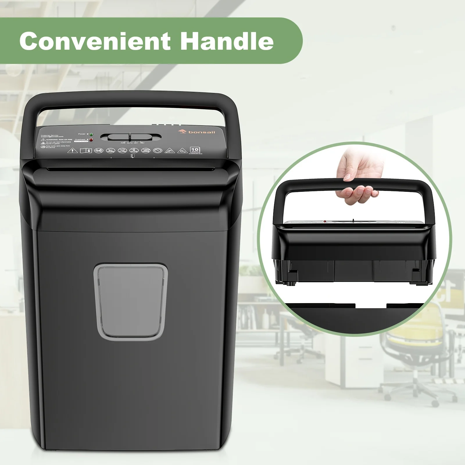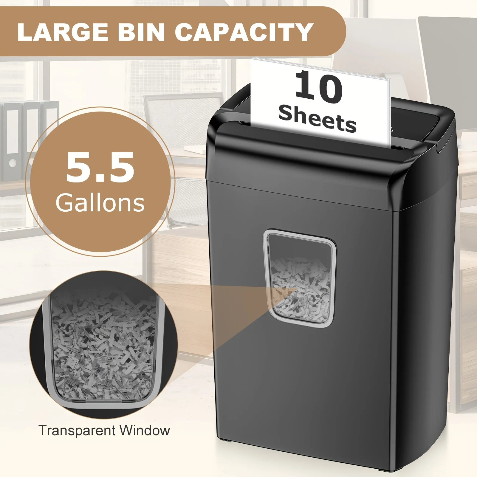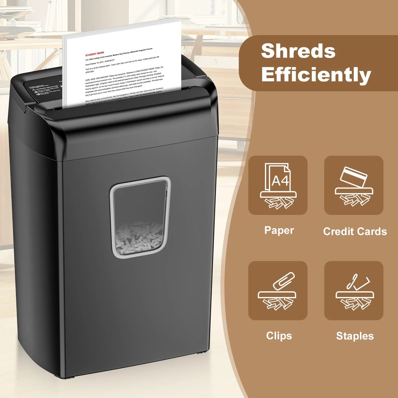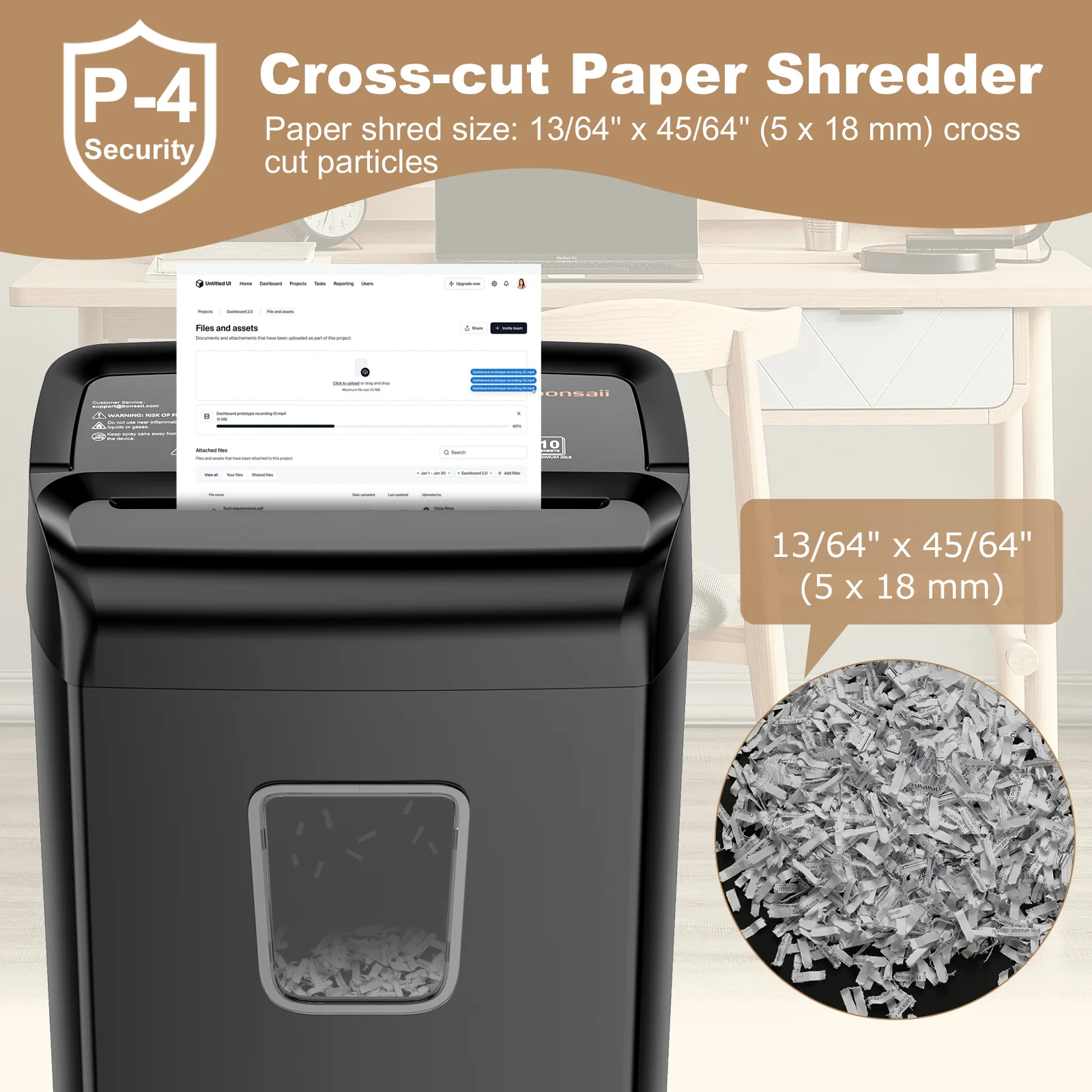 10-Sheet Capacity:The crosscut shredder can shred up to 10 sheets per pass into tiny particles measuring 13/64" x 25/32" and is capable of shredding staples, paper clips, credit cards, and mail. With a P-4 security level, it ensures the safety of your confidential information.