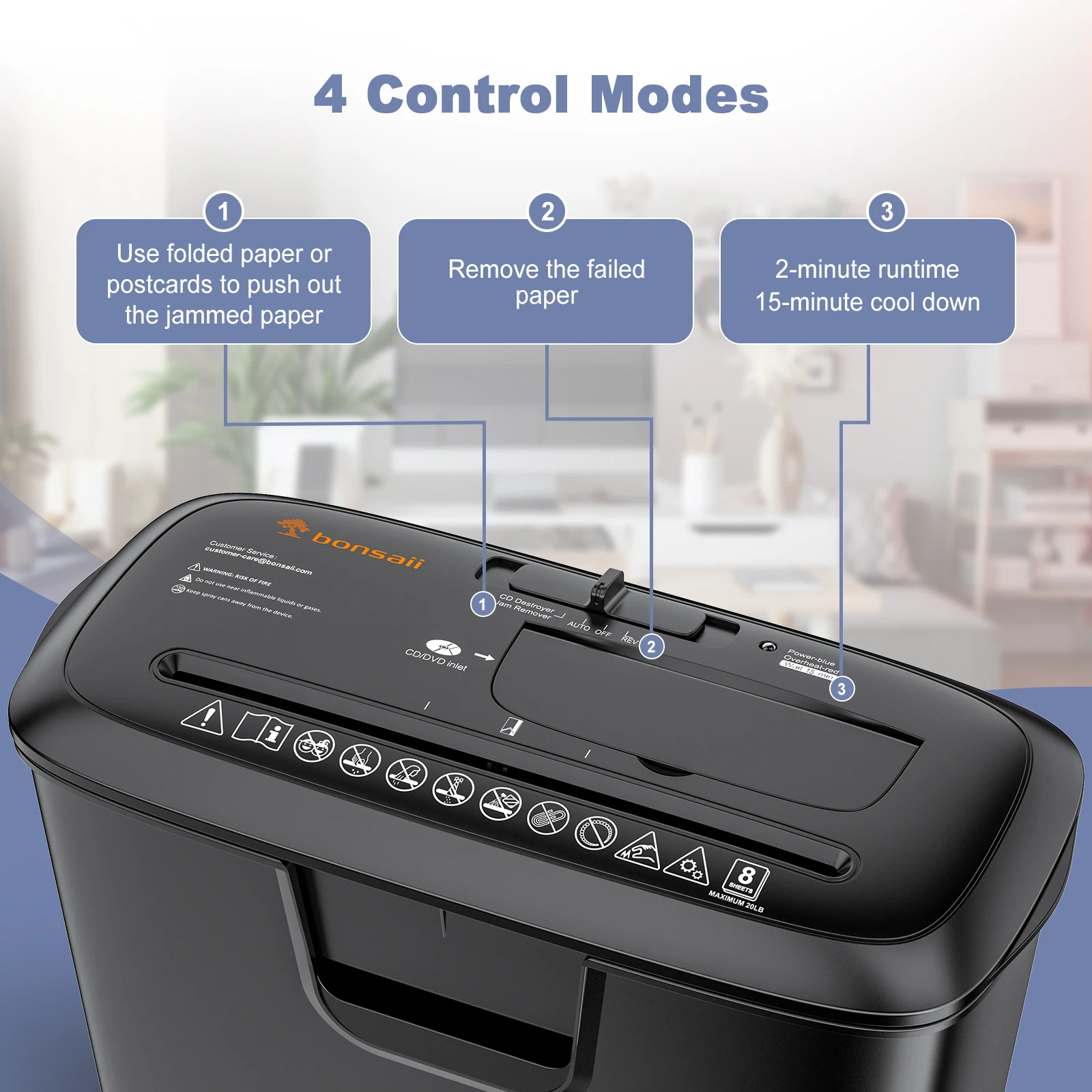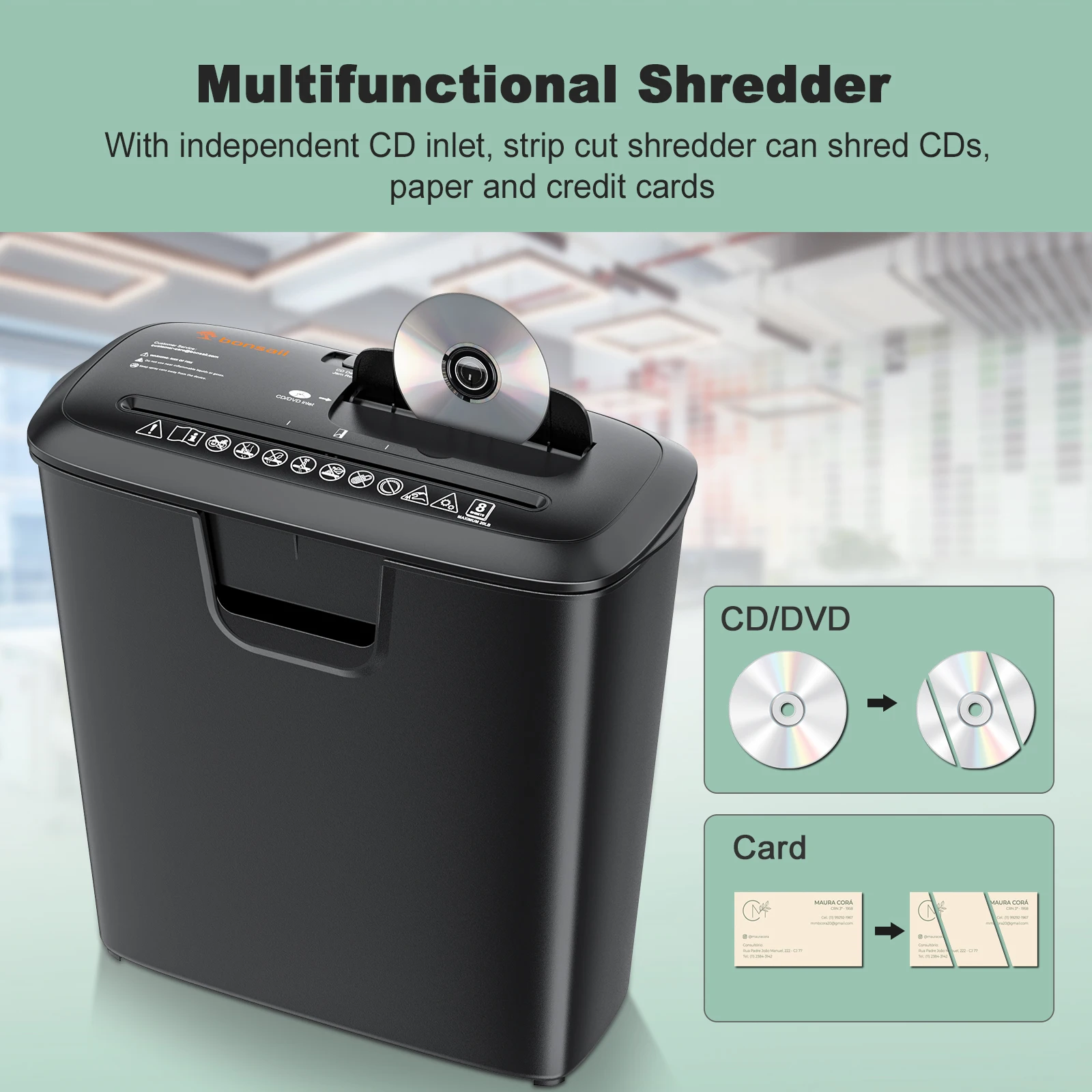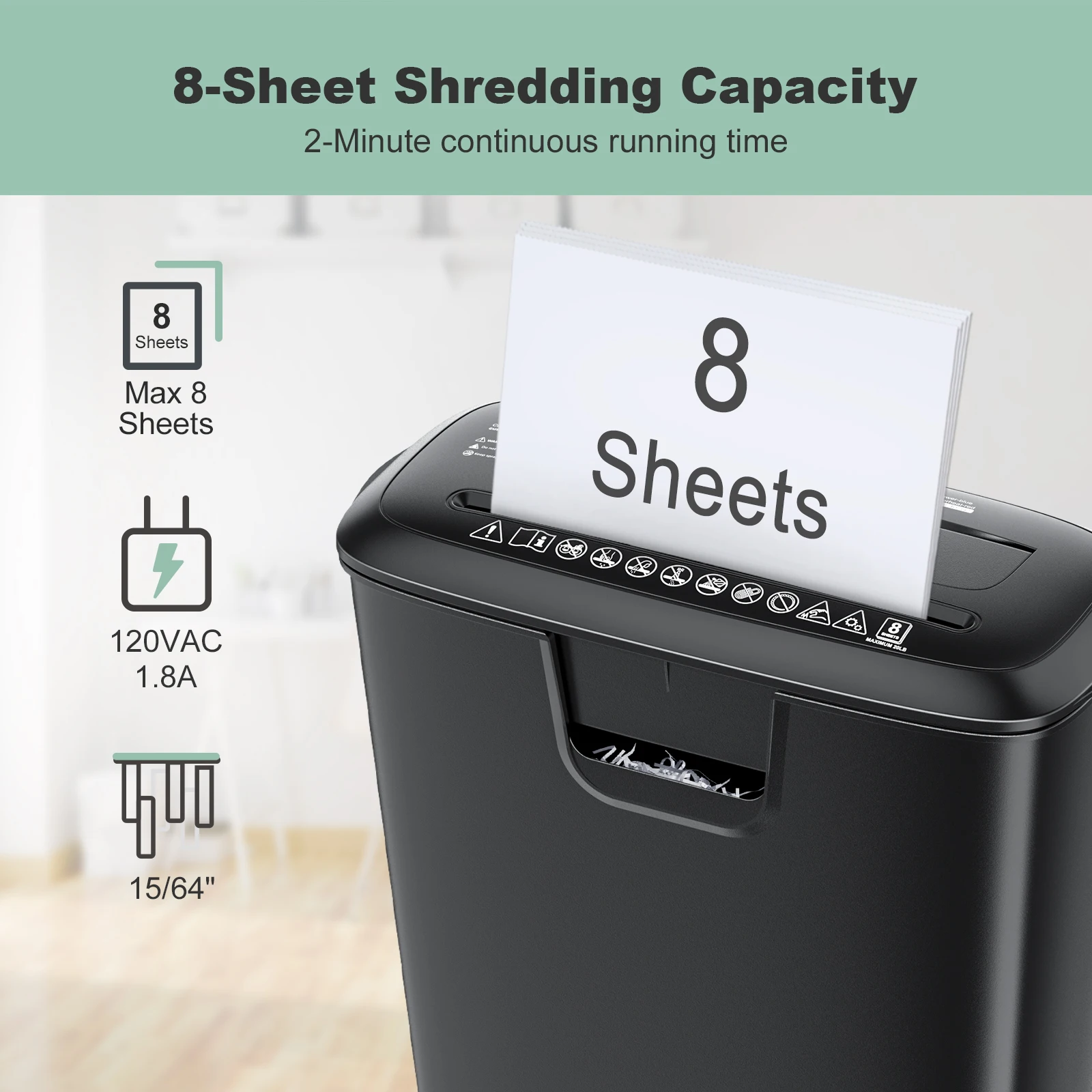 8-sheet shredding capacity: Our household shredder can process up to 8 sheets of paper at a time, can work continuously for 2 minutes, adapts to various materials, can shred credit cards, CDs, DVDs, and other confidential documents, and meets various needs