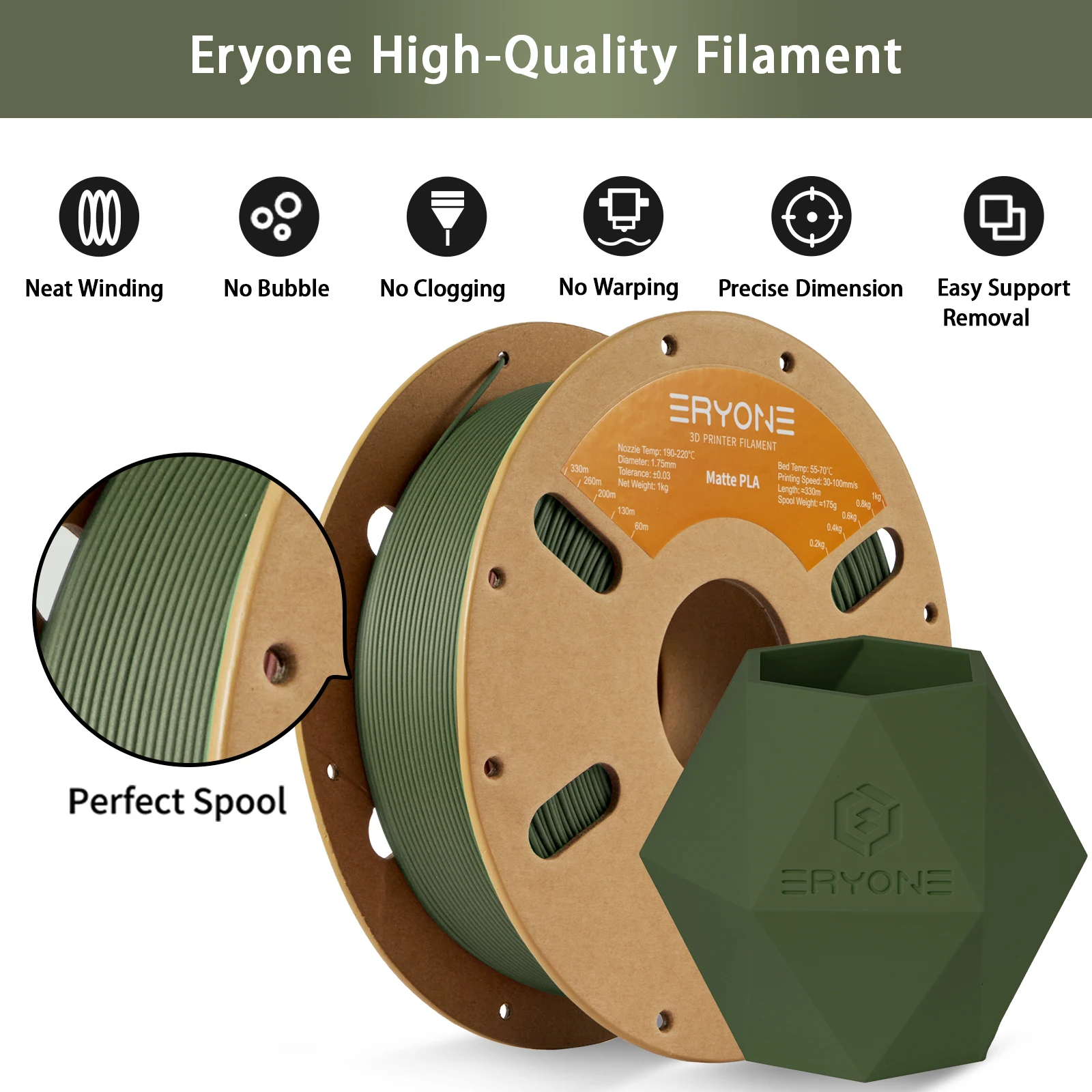 ERYONE Matte PLA Filament High Quality 1KG (2.2LBS) Diameter 1.75mm Perect Spool Matte Filament For 3D Printing Fast Shipping