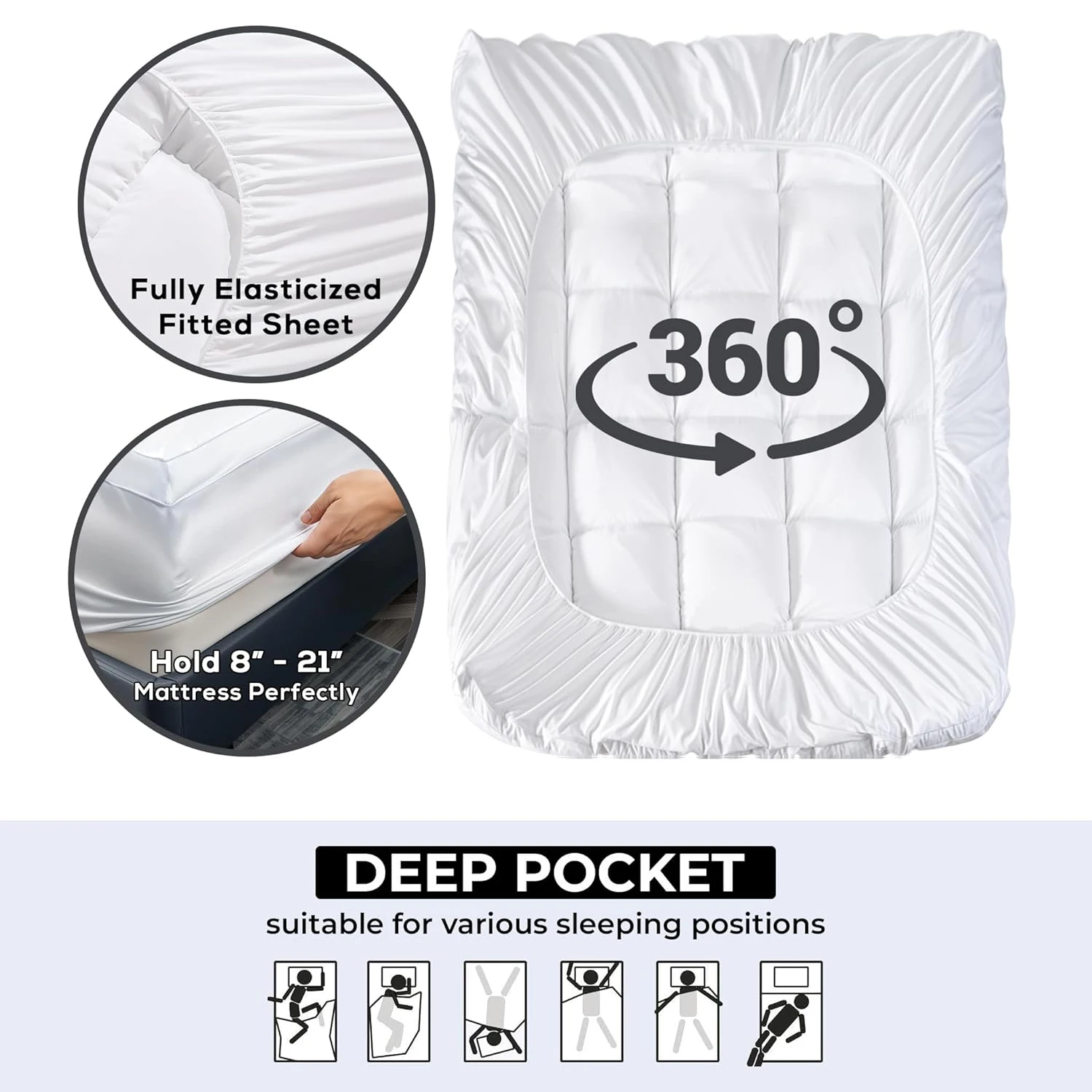 Relieve Back Pain – The mattress pad provides you optimum thickness, achieves a smart balance between softness and cushioning. When you sleep on our mattress pad cover, it can gently cushions the pressure points on your back, lower back and hips to help relieve back pain, providing a ergonomic support and comfort for your sleep