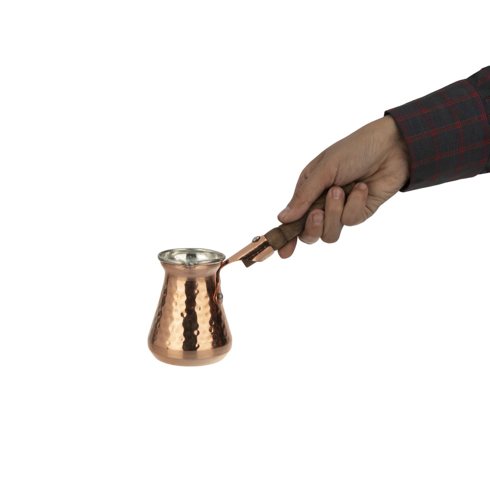 This Coffeepot is designed for making coffee and is suitable for 1 to 2 cups of coffee, it is made of pure copper and its wooden handle prevents heat transfer.