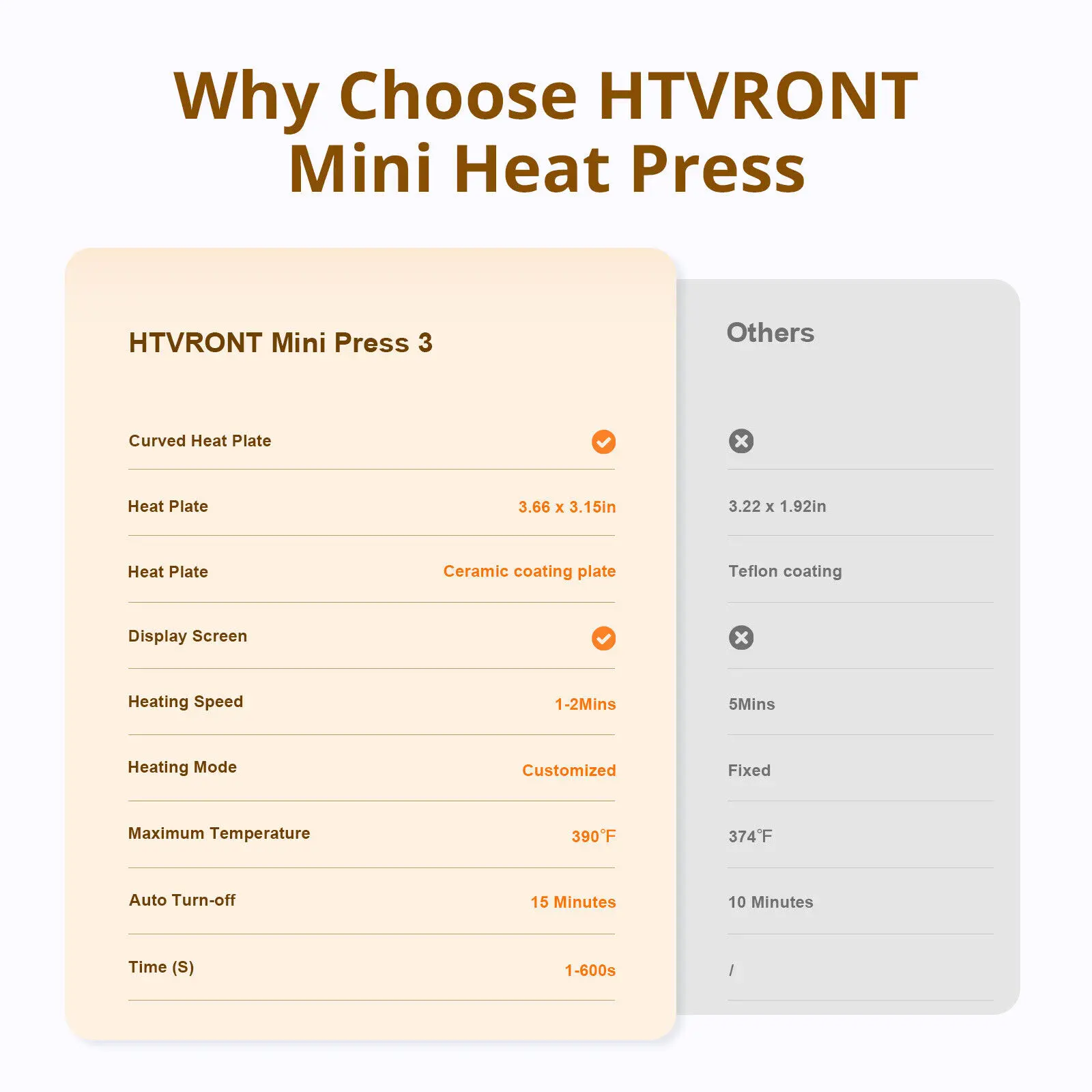 【FAST HEATING UP & DURABLE】 Using our mini heat press will save you nearly 20 seconds of heat-up time compared with other brands. At the same time, Our heat press machine adopts durable and high-temperature resistant materials, and the maximum temperature can reach 356°F (180°C). The soleplate is made from a ceramic coated dry heat plate, the soleplate is durable and high temperature resistant without deforming & melt.