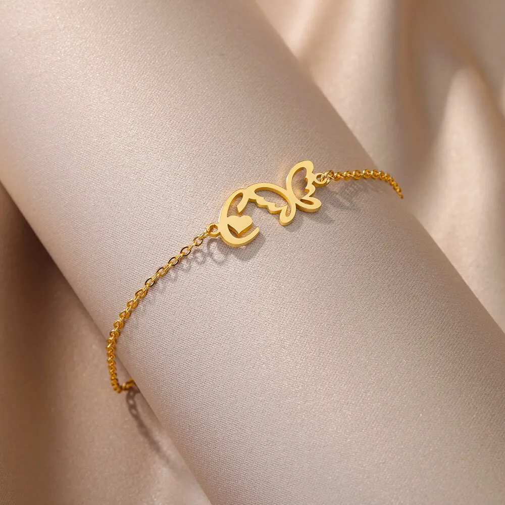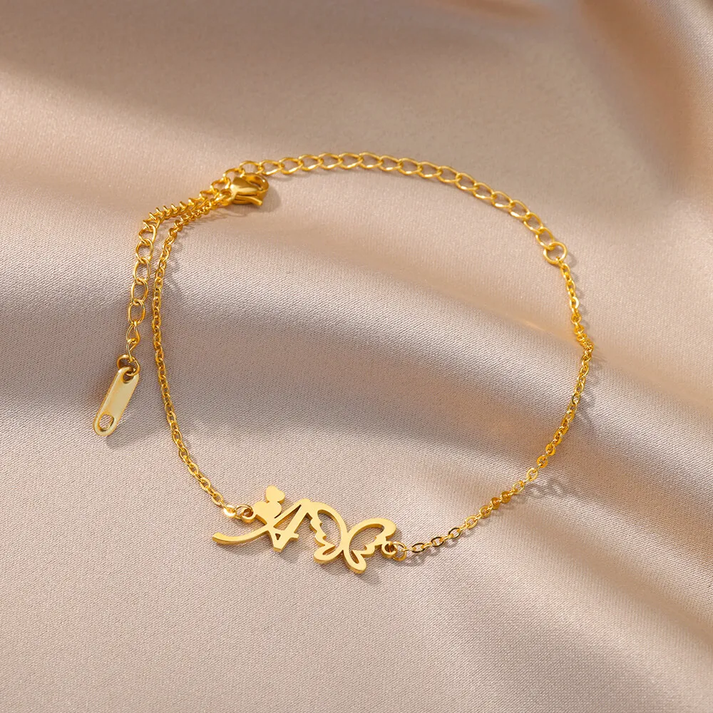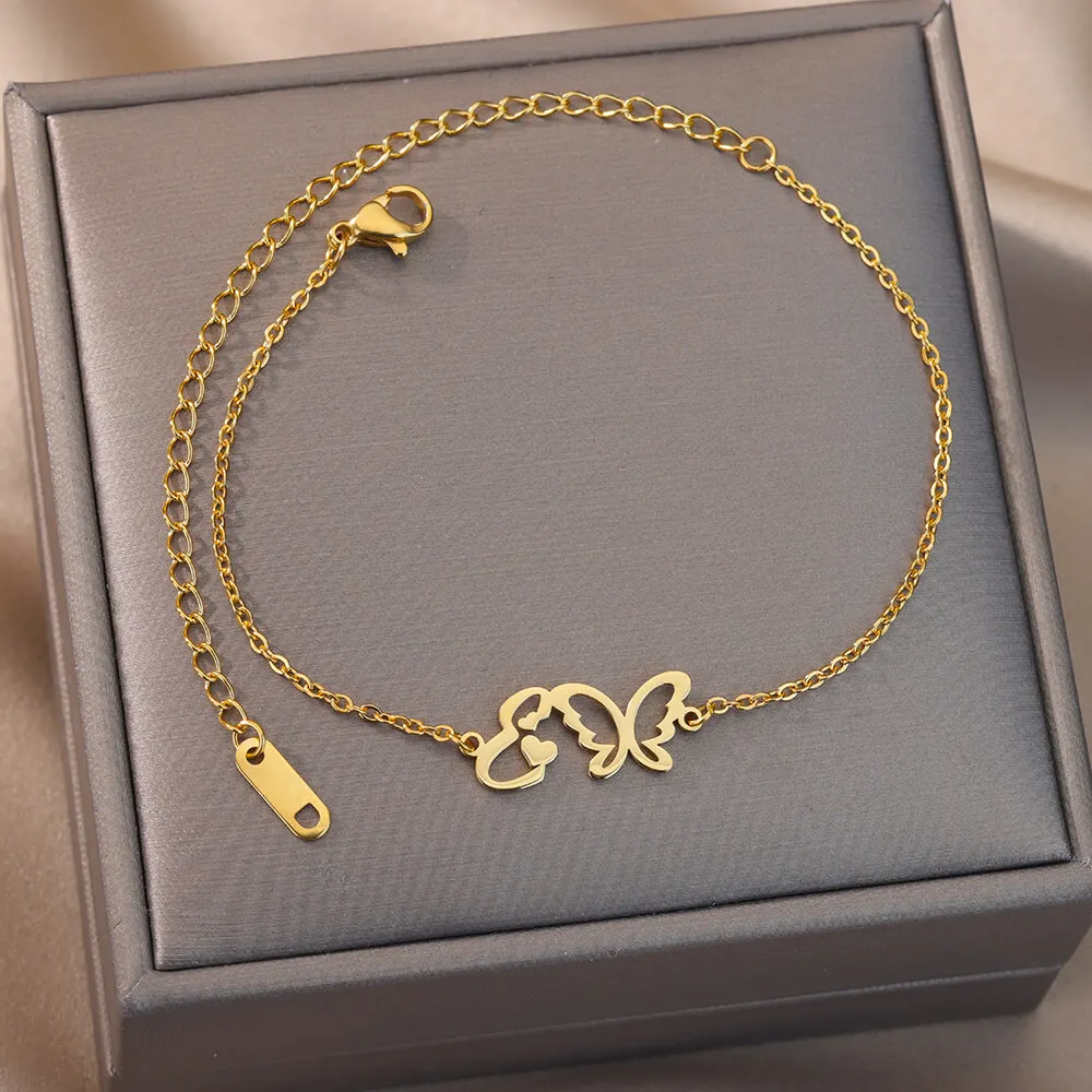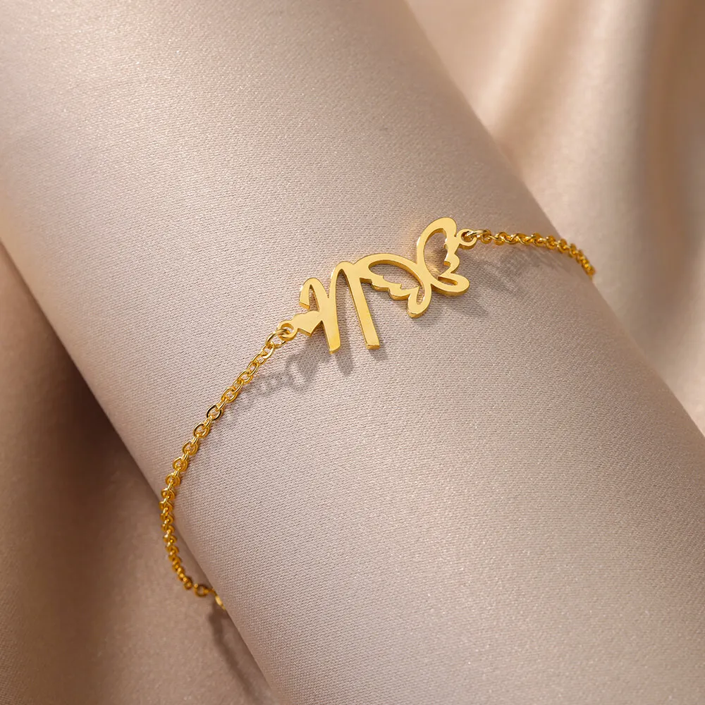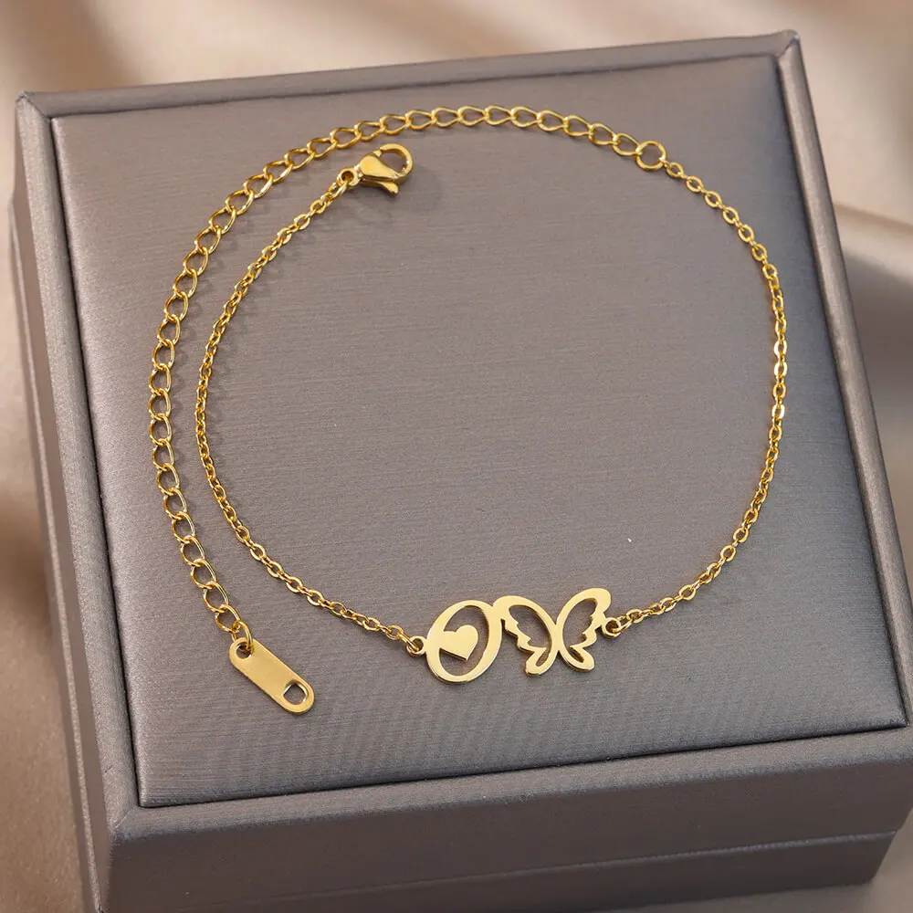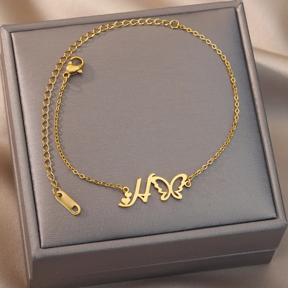Initial Anklet With Butterfly For Women A-Z Letters Butterfly Stainless Steel Anklets Femme Beach Summer Jewelry BFF Gift
