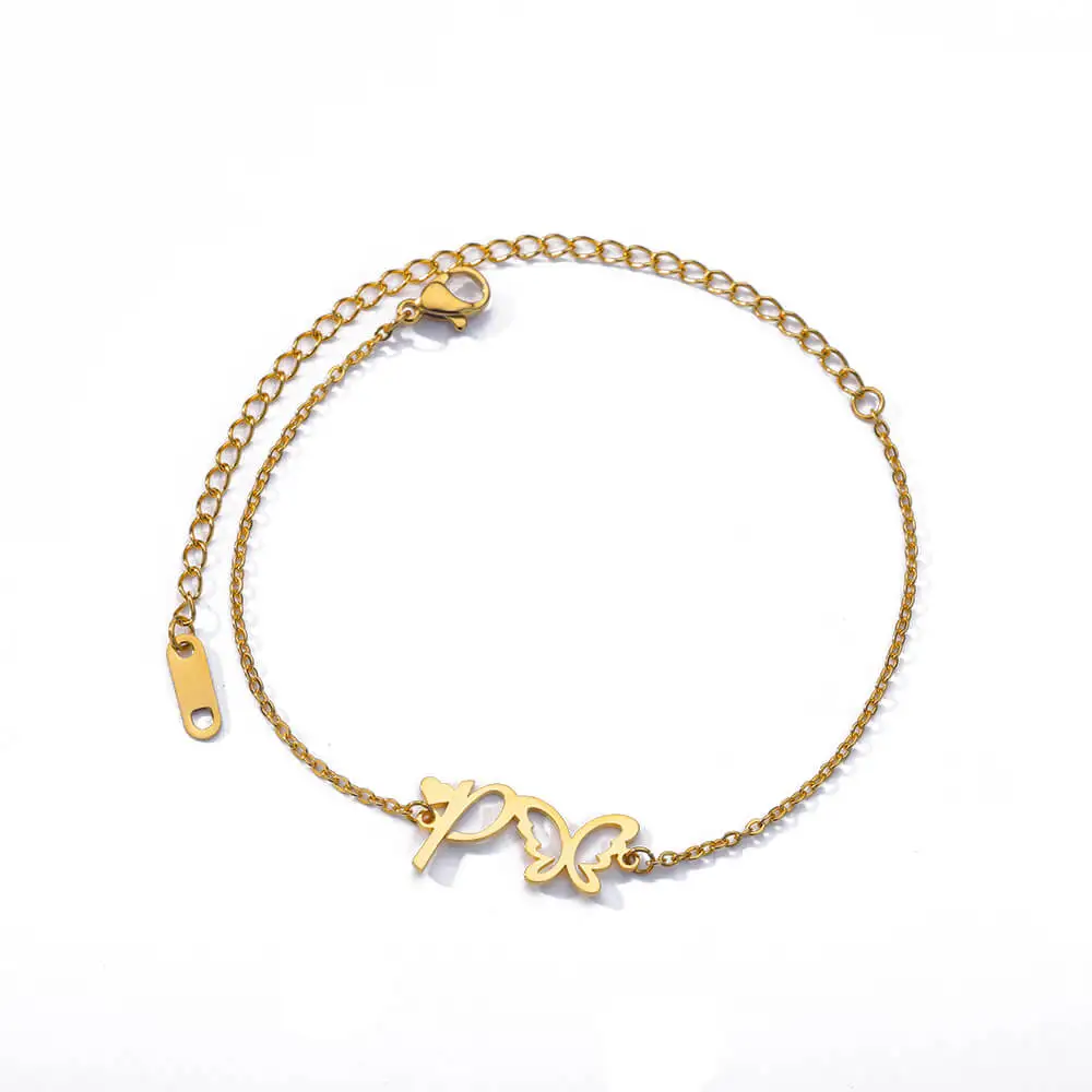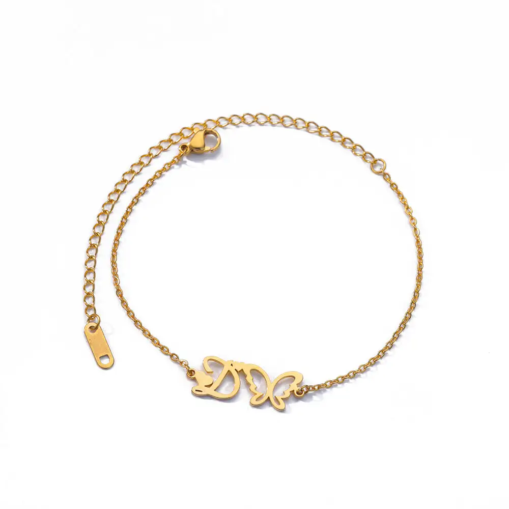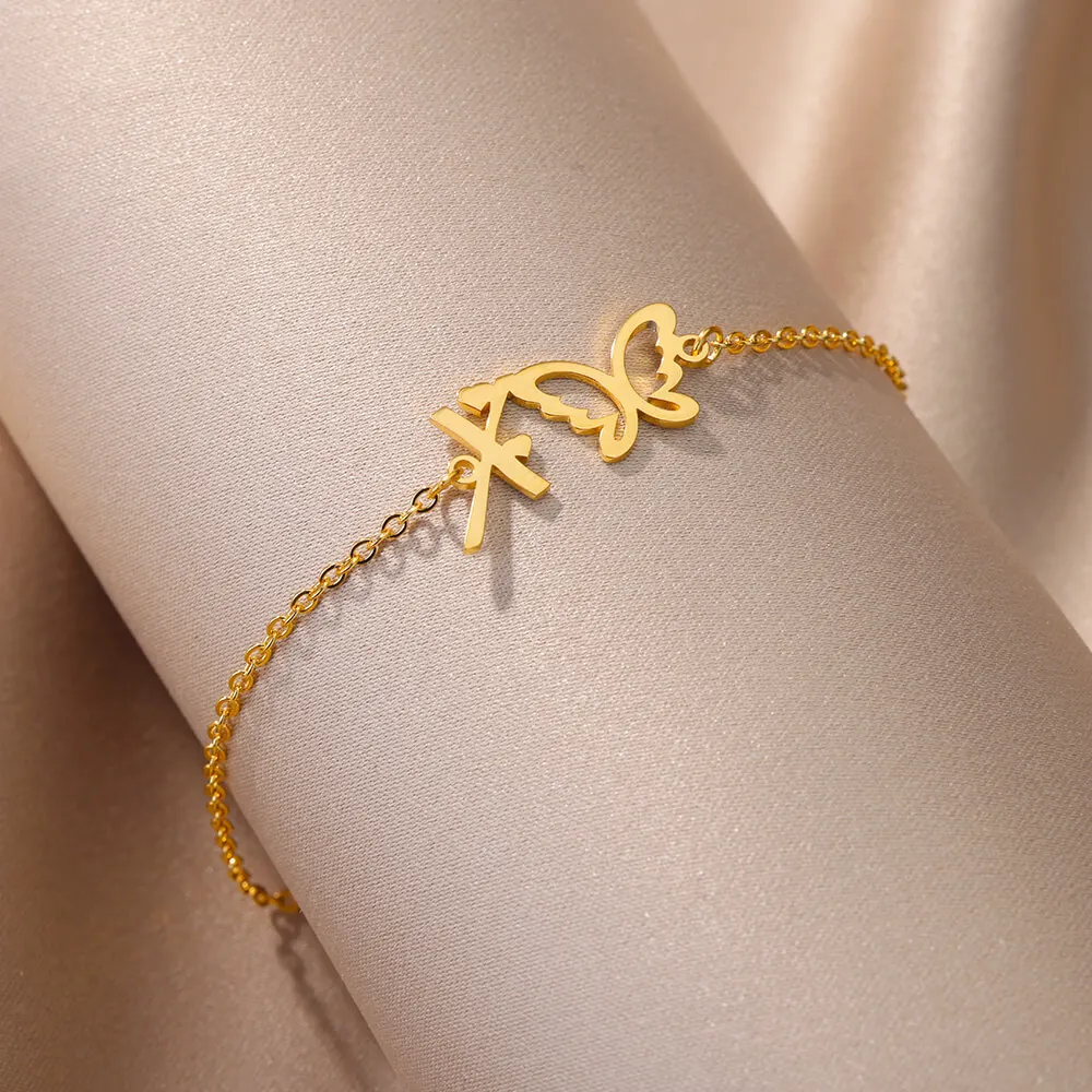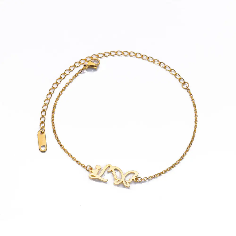 Initial Anklet With Butterfly For Women A-Z Letters Butterfly Stainless Steel Anklets Femme Beach Summer Jewelry BFF Gift