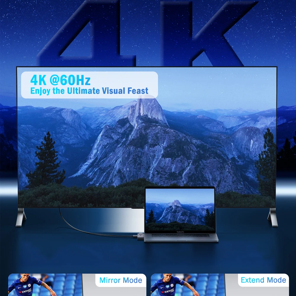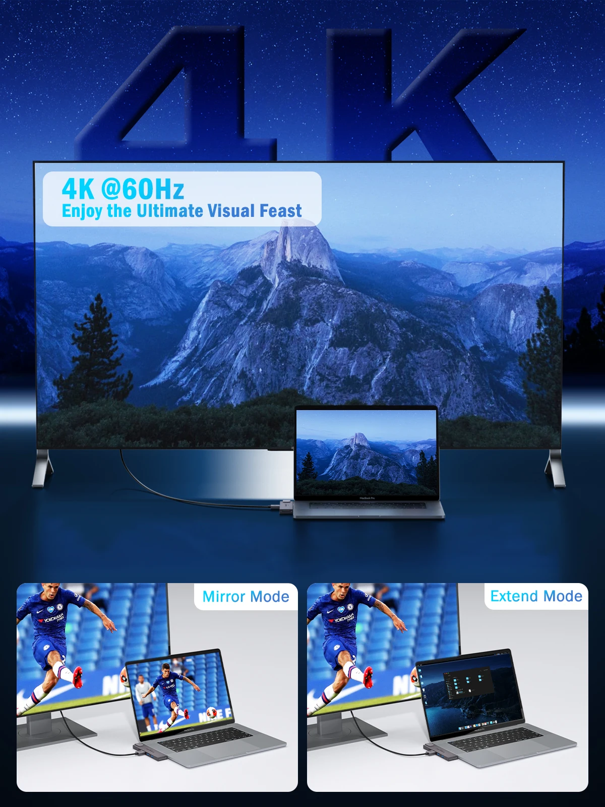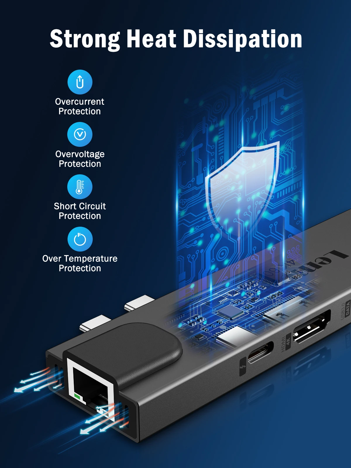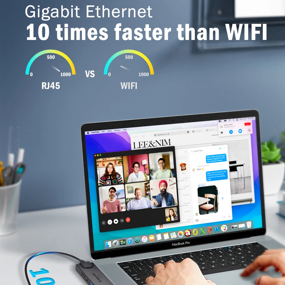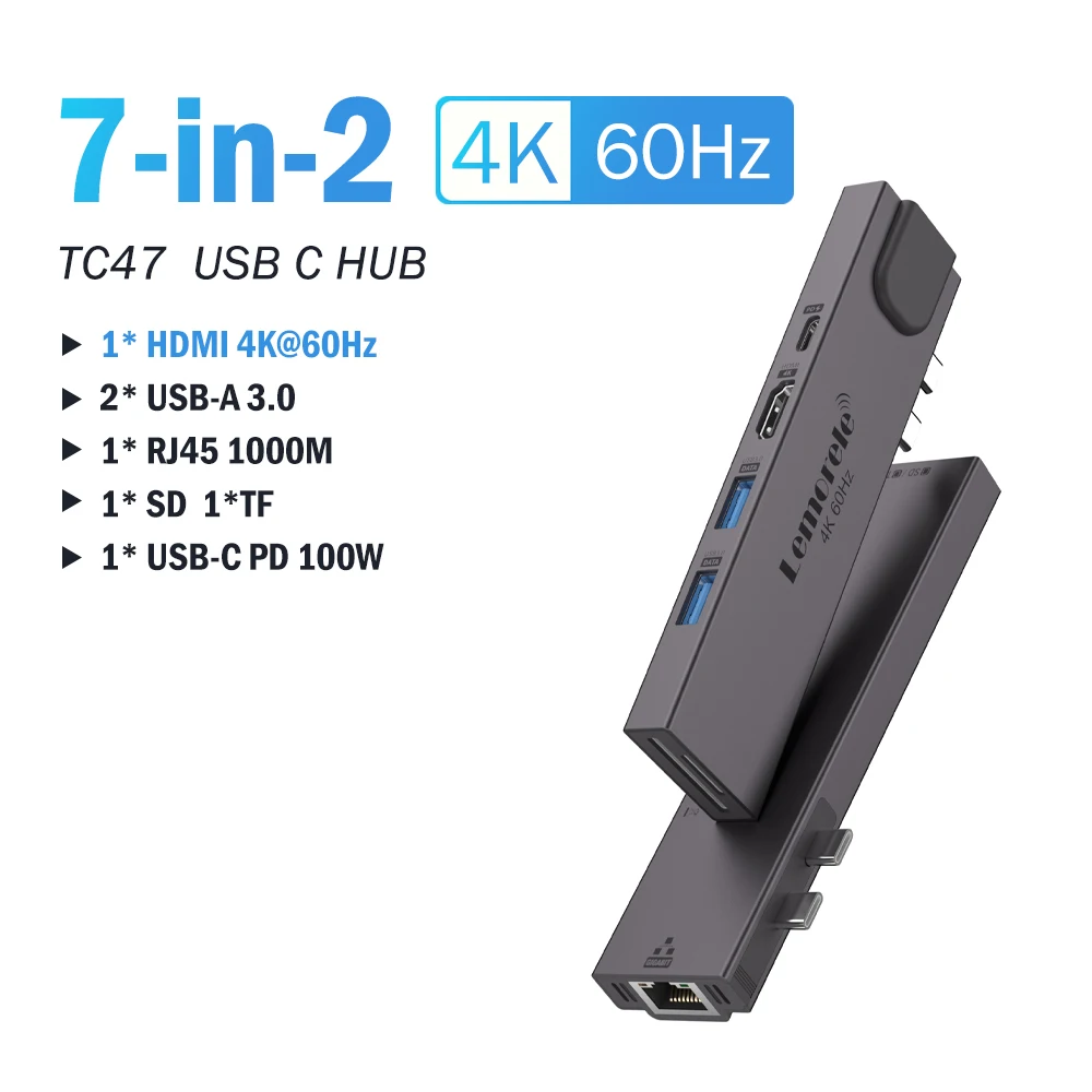 Lemorele TC47 7-in-2 USB C HUB For MacBook 4K@60Hz HDMI Wireless Type C Gigabit Docking Station Adapter 100W PD RJ45 SD/TF Slot