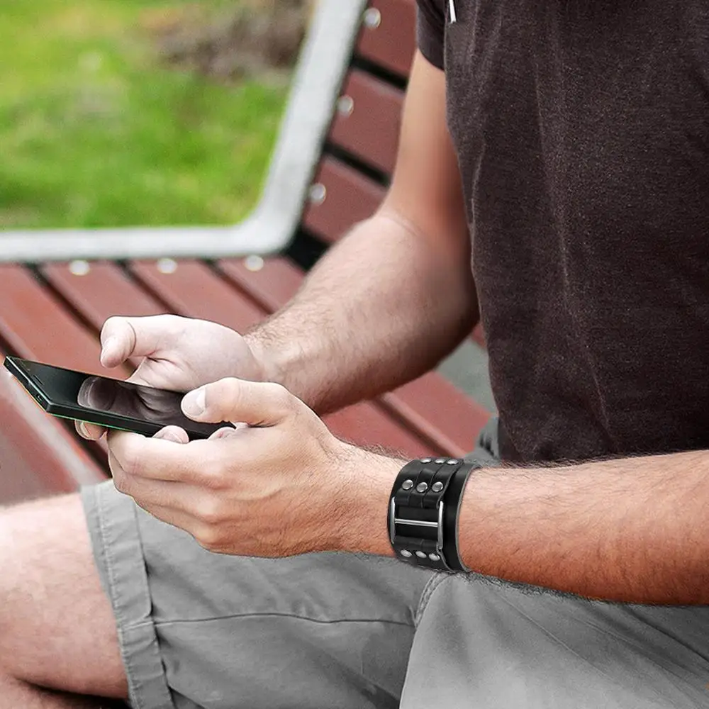 BONISKISS Cool Style Wide Big Buckle Rivet Genuine Leather Bracelet For Men and Women Adjustable Cuff Wristband Bracelet Bangle