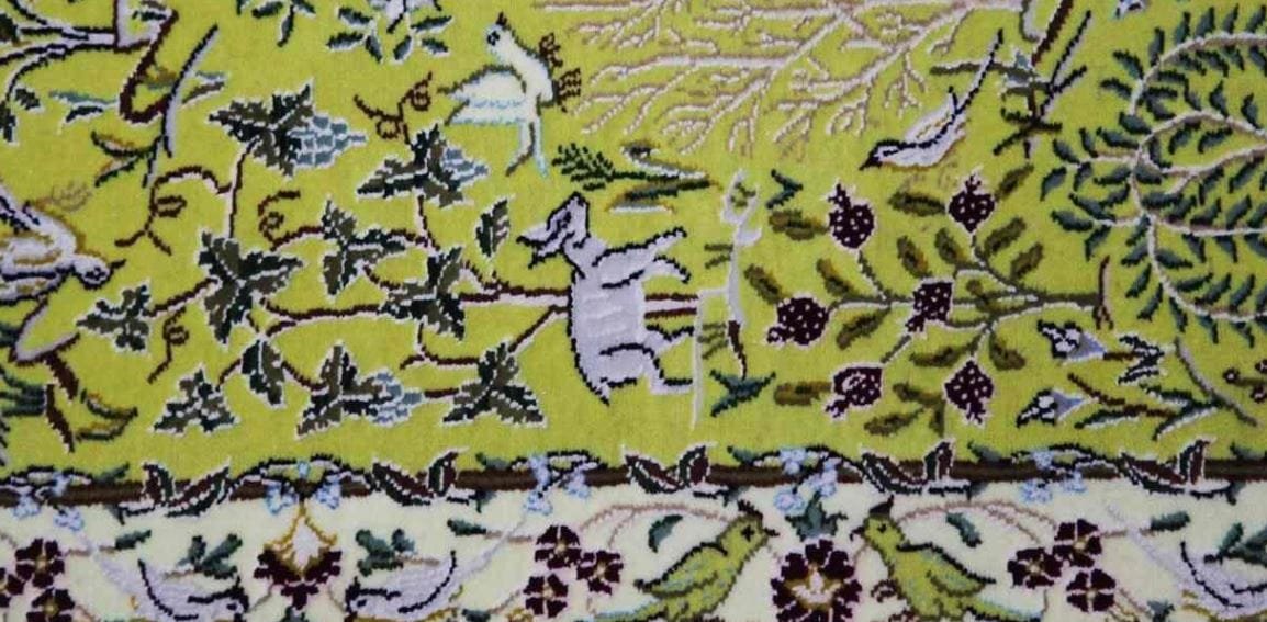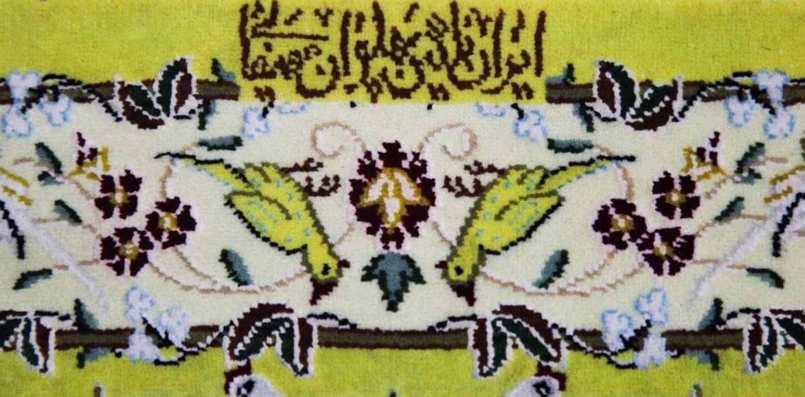 Handwoven carpet is an example of a genuine Iranian quality carpet that is woven in the city of Nain Isfahan in Iran and is seen with the Gol O Morgh design. The carpet is made of soft and silk wool and its fluff is made of silk and its cotton yarn is made of cotton yarn. This fluffy carpet will smoothly match itself with any decor. Its yellow margin is like a beautiful strip around the background of the carpet. Along with all its features, this carpet has been dyed in the traditional style, making it an ideal choice.