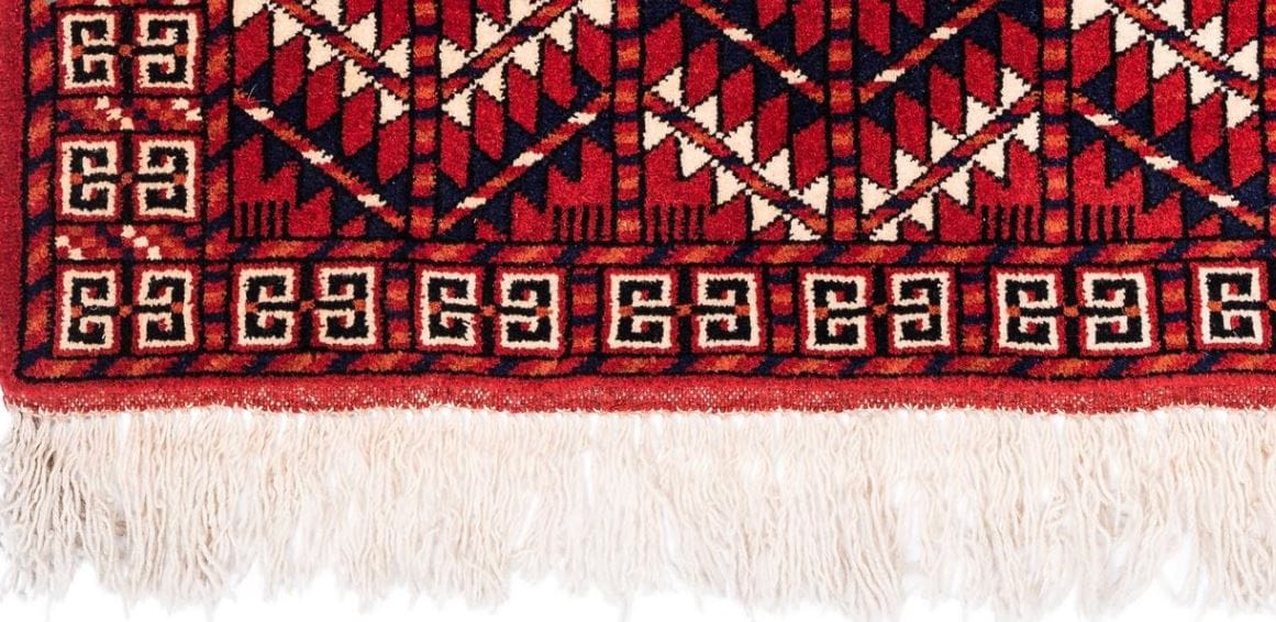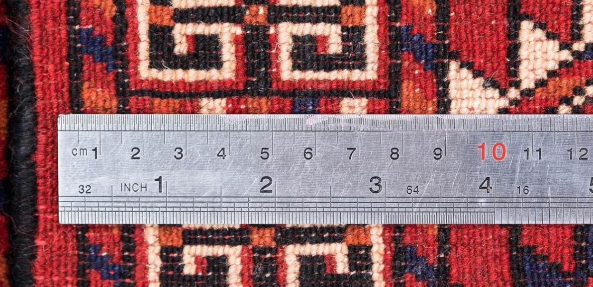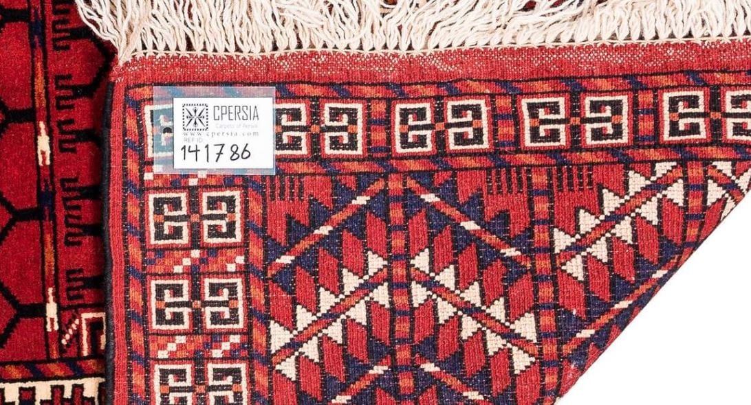 The Handwoven carpet is made of genuine Iranian quality rugs that is woven in Turkmen tribes in Iran and is seen with the Hendesi design. Wool carpets and woolen yarns are used. This Handwoven carpet easily adjusts itself to any decor. Its background color and its margin are in red, which is like a beautiful strip around the background of the carpet.