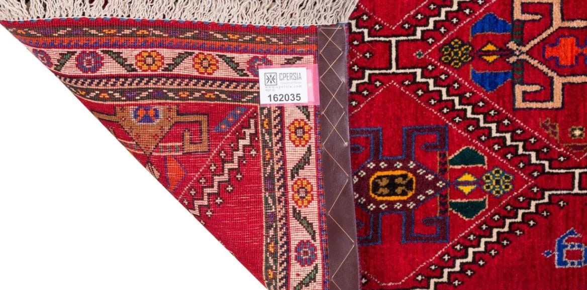 This Iranian Handwoven carpet is made by the Shiraz weavers in Iran and created in a beautiful map with the Hendesi scheme. This carpet is made from woolen pepper and the wool and cotton yarn are also used. The background of this Handwoven carpet has been red. Persian Handwoven carpet will show you the beauty of your home. With a density of 40 Row texture.