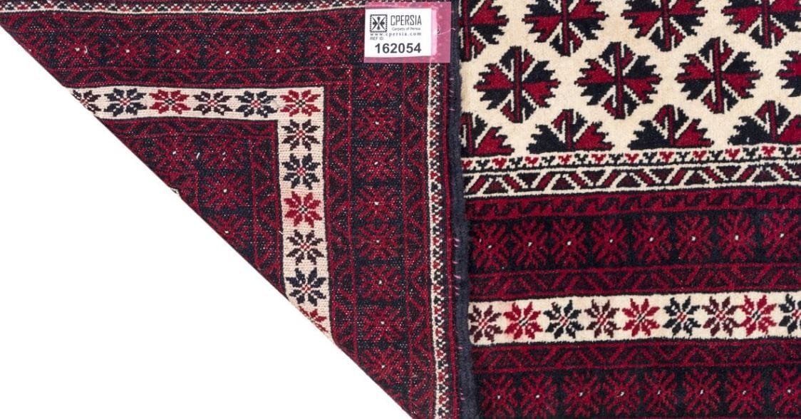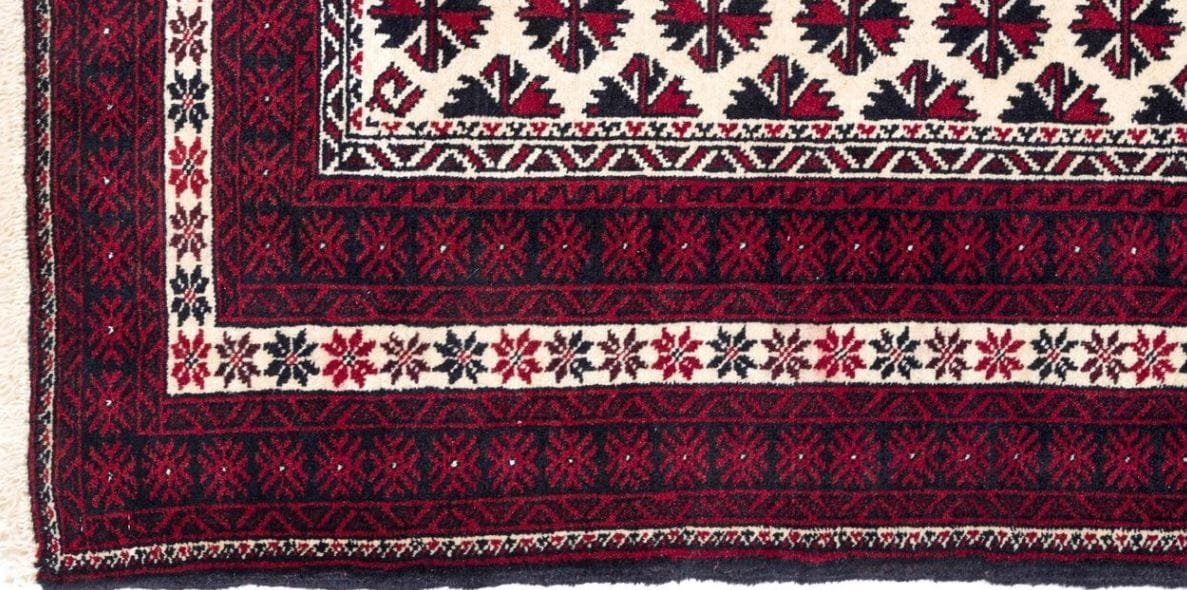 Handwoven carpet is made from high quality Persian carpets, woven in Balochistan in Iran, and is seen with Mehrabi designs. Carpets and rugs are made of wool. The background and margin of its cream is like a beautiful strip around the background of the carpet. Along with all its features, this carpet has been dyed in the traditional style, making it an ideal choice.
