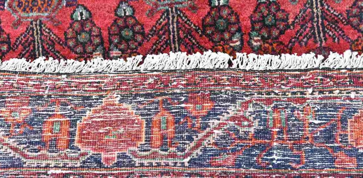 This Persian handwoven Rug is made by weavers in the city of Nahavand in Iran, in the form of a beautiful design of SaraSar. Woolen and woolen rugs are made of cotton yarn. This 5 m handwoven Rug is a beautiful work of graceful and traditional designs on a beautifully red-colored red background on this Rug, which is surrounded by a dark blue border. In addition to all of these, dyeing of the Rug is done in a completely traditional manner using natural colors.