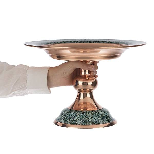 For those who are interested in traditional Persian art, nothing looks attractive as a beautifully crafted and valuable dish that can be used to cater to guests. A unique and unique product that Isfahan artists have designed and implemented in all its elegance and have given it a beautiful look. The turquoise turquoise 21 cm high in Esfahan has been decorated with all the skill and elegance of the turquoise gemstones.