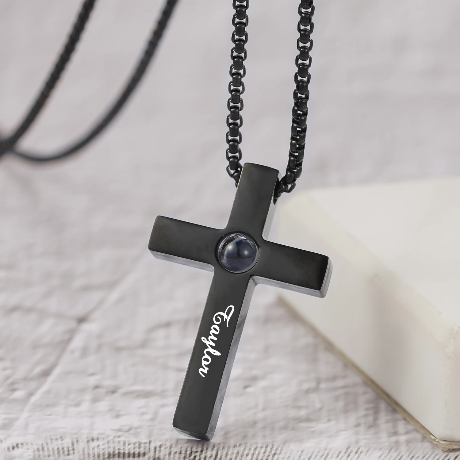 Dascusto Customized Cross Projection Necklace Men Personality Memorial Gifts For Birthday Anniversary Best Gifts Men's Jewelry