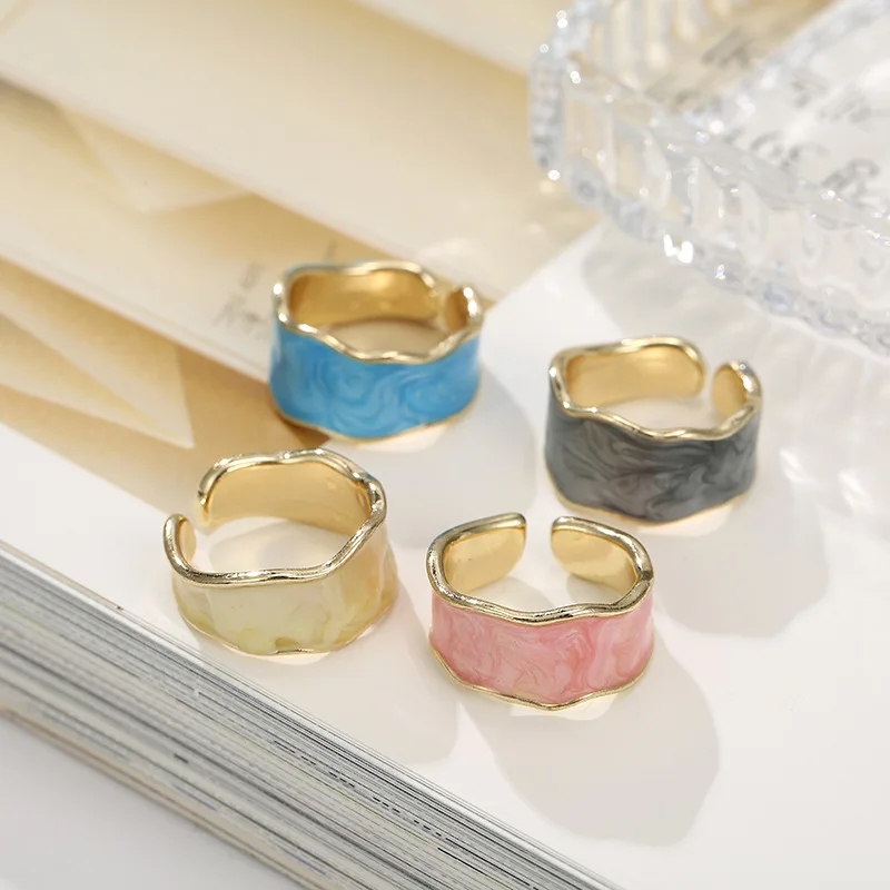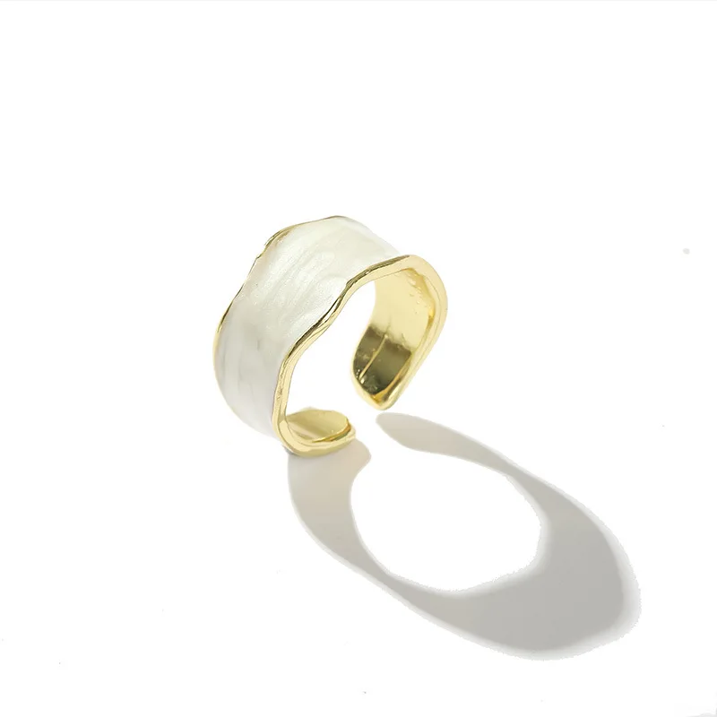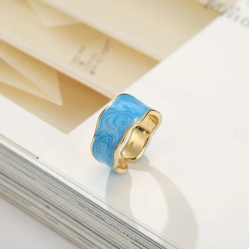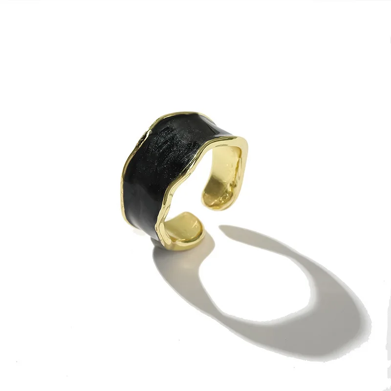 Vintage Enamel Irregular Open Ring – Gold Adjustable Geometric Statement Jewelry